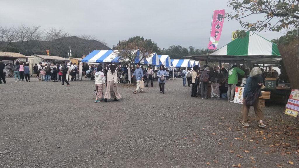 会場内には、屋台が立ち並ぶエリアもあります。食事はもちろん、お花や雑貨も販売されていて、お祭り気分を堪能できます。私が訪れた日は、ニホンザルのショーもやっていました。